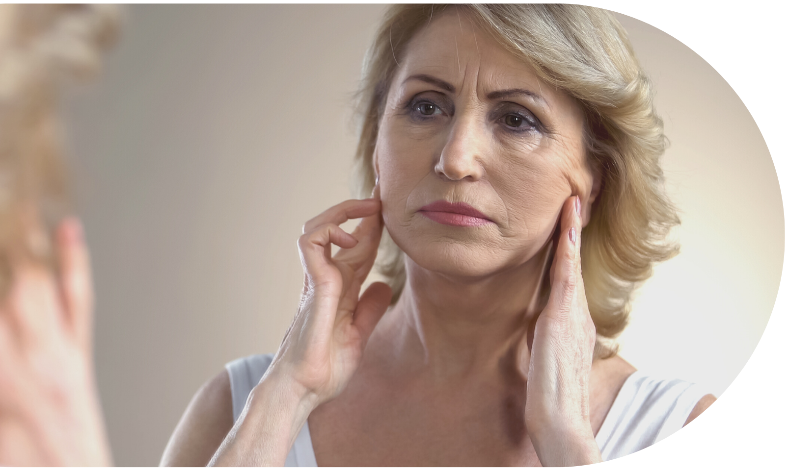 Первые признаки: морщинки вокруг глаз и рта, потеря упругости, неравномерная пигментация и расширенные поры (если у вас это не от рождения).